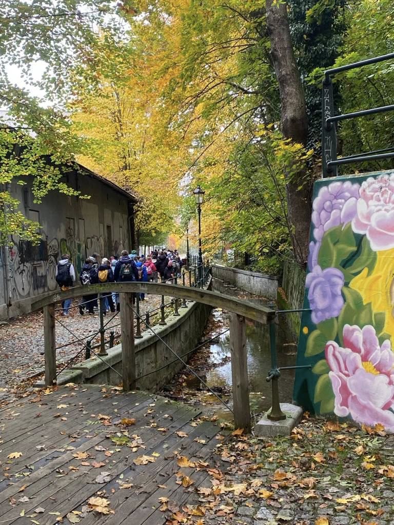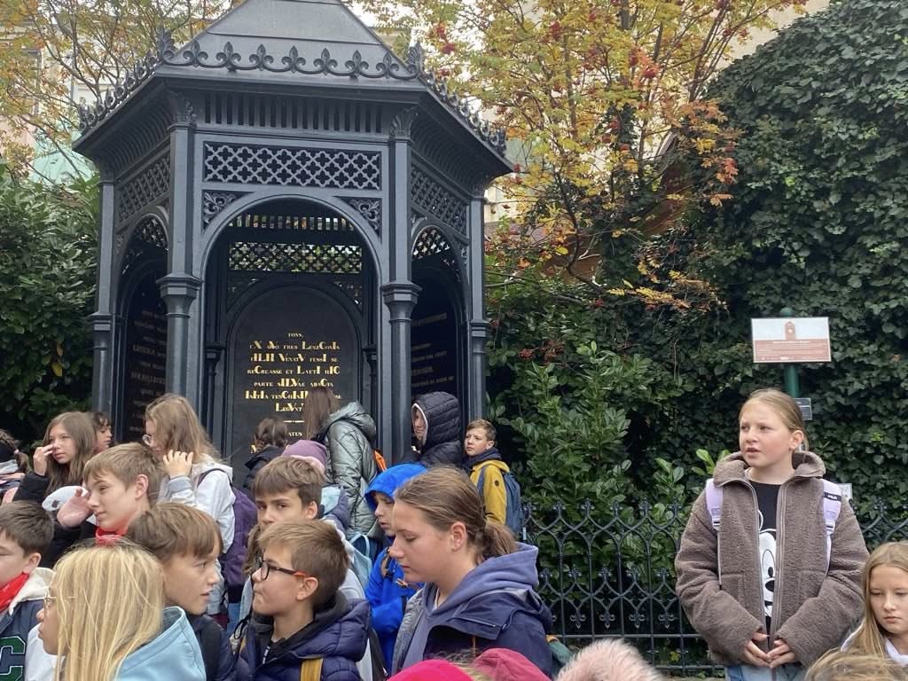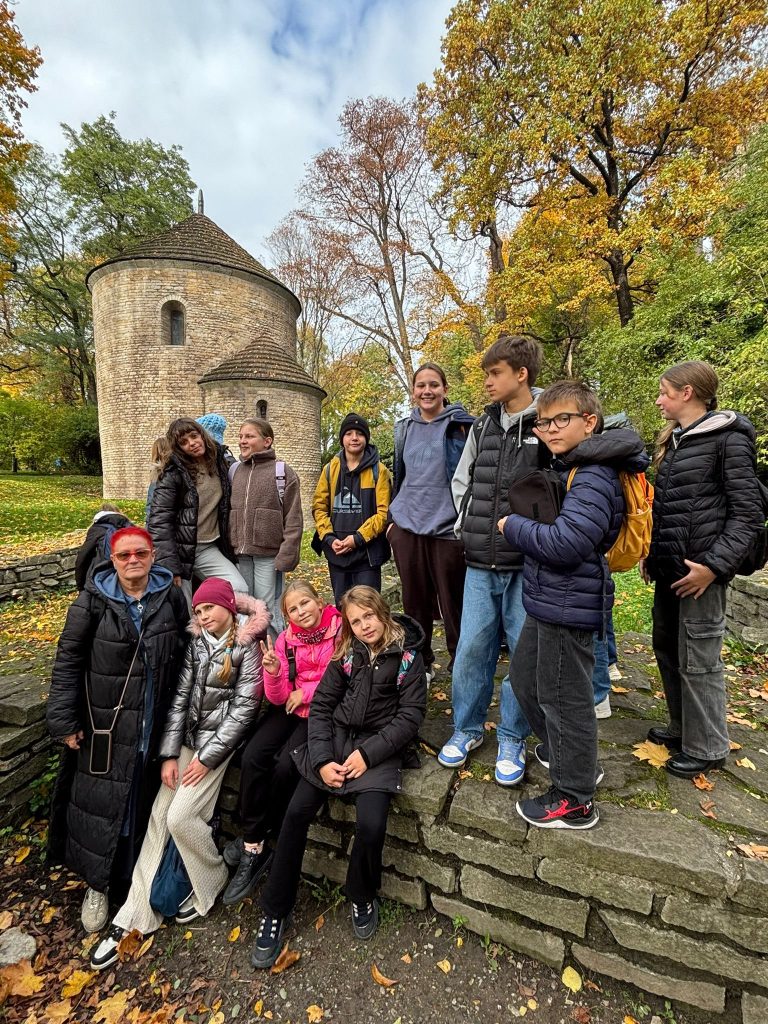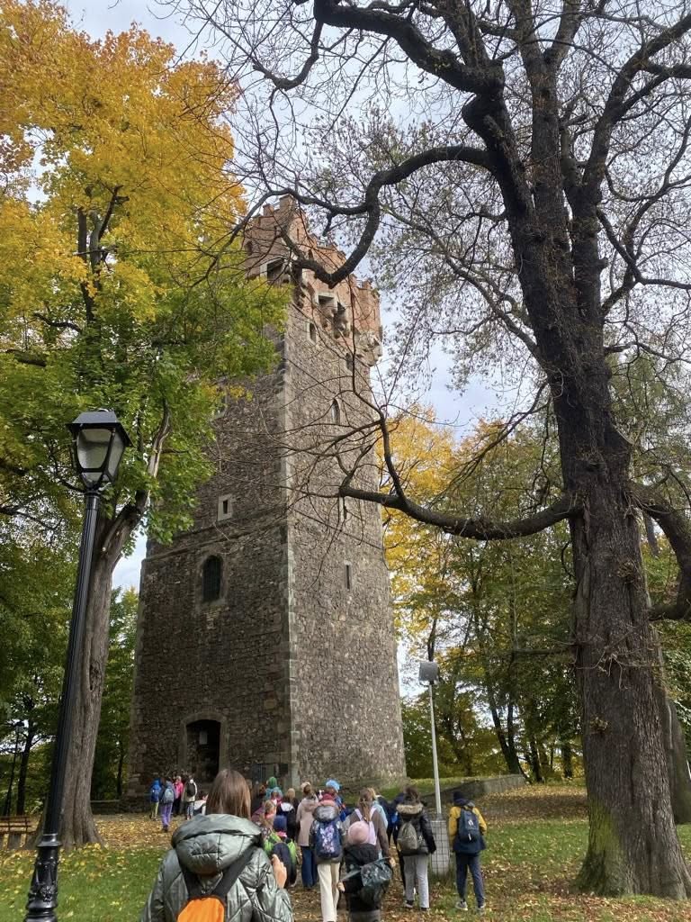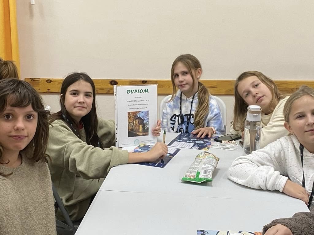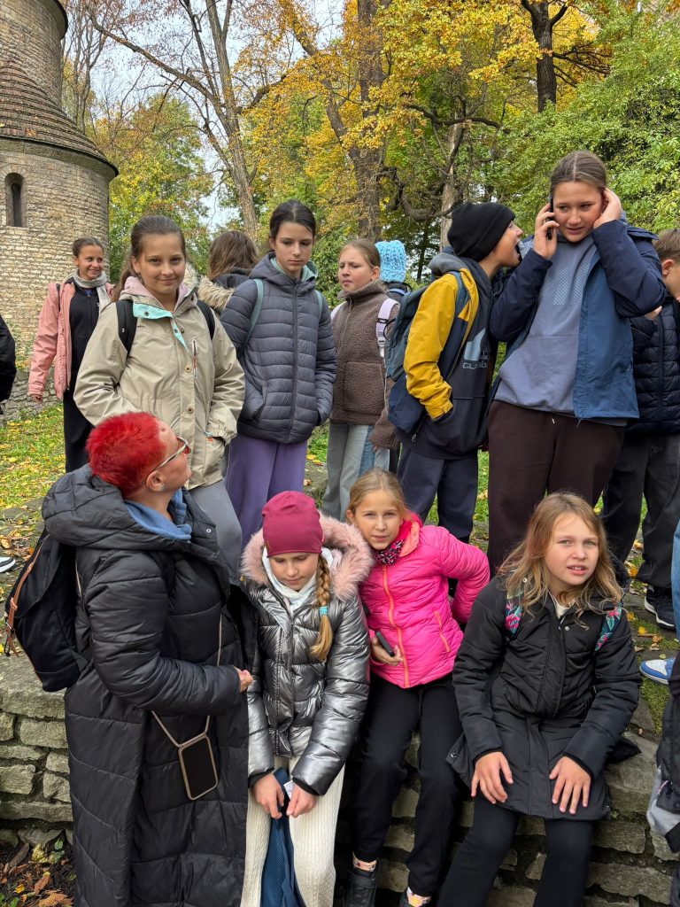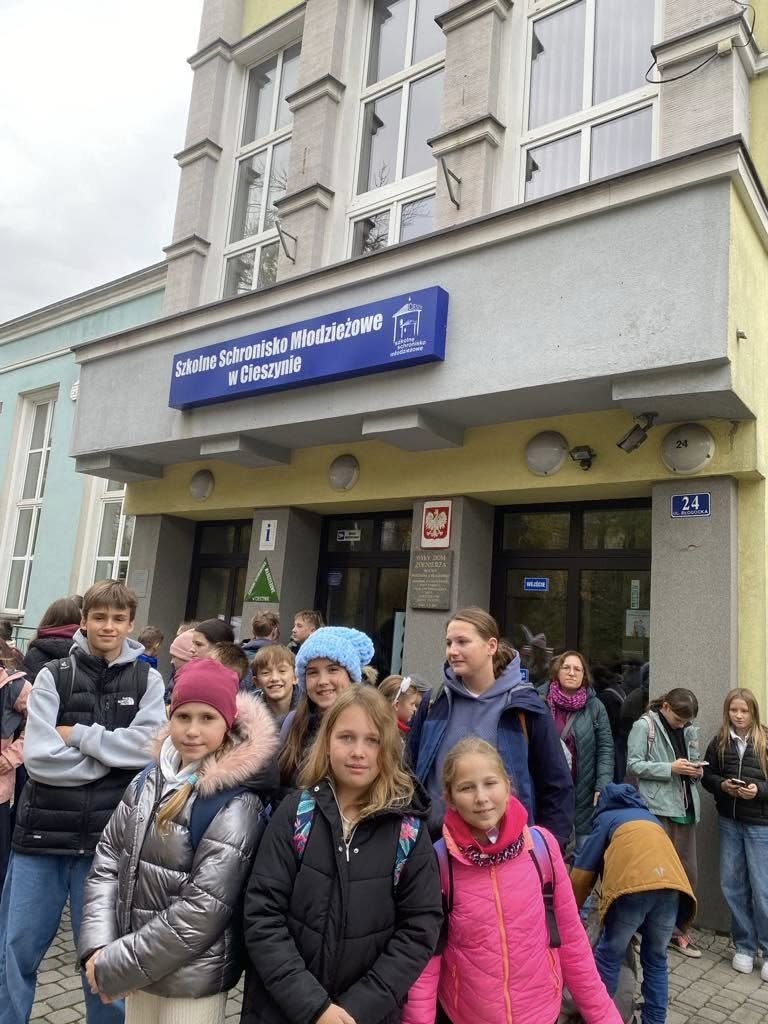 Turyści z „13” wyruszyli na pełną przygód dwudniową wyprawę do Cieszyna – miasto o niezwykłej historii, położone na granicy Polski i Czech. Podczas spaceru z przewodnikiem zwiedzili Wzgórze Zamkowe z wieżą Piastowską i Rotundą św Mikołaja, zajrzeli do Studni Trzech Braci. Zatrzymali się też przy słynnym cieszyńskim tramwaju, spacerowali po urokliwej Cieszyńskiej Wenecji – miejsce, które podobno inspirowało przygody”Kociej Szajki”. Wzięli udział w warsztatach linorytu w Muzeum Drukarstwa, gdzie każdy uczestnik mógł stworzyć własny artystyczny druk i zabrać go na pamiątkę. To był dzień pełen nauki, zabawy i twórczej inspiracji. W Międzyszkolnych Konkursach też było wiele twórczości! W Literackim – własny wiersz o urokach Cieszyna, nasza Nastia Sochacka (6b) zasłużyła na wyjątkowe 1 miejsce! W muzycznym konkursie, znowu nasza Agatka Buda (4a) wyśpiewała też 1 miejsce, a w trzecim Międzyszkolnym konkursie Plastycznym nasza Madzia Majka (6c) zdobyła 3 miejsce! Gratulacje dla nich! W Sejmiku Młodzieżowym brały udział 4 szkolne koła turystyczne! Jak zawsze — dni upłynęły w twórczej atmosferze i pełne były towarzyskiej aktywności!