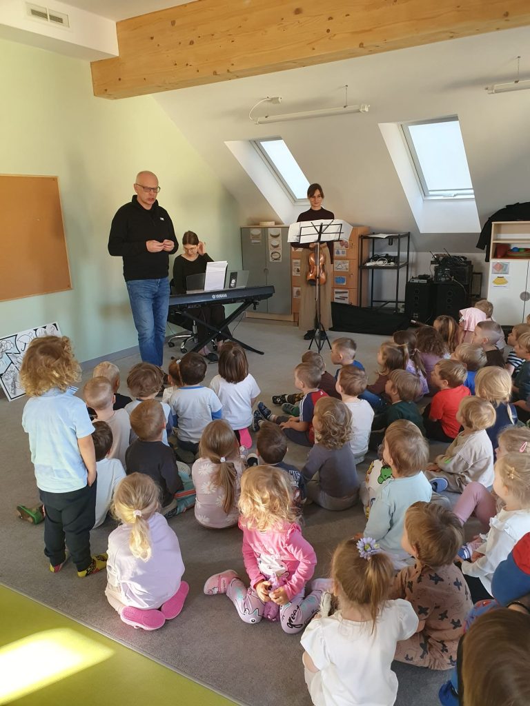 - 13.10 odbyły się w naszym przedszkolu pierwsze zajęcia pt. „Pani Gama”, prowadzone przez pracowników Filharmonii Śląskiej. Dzieci poznały dwa bardzo ciekawe instrumenty i przeniosły się w świat zaczarowanej muzyki