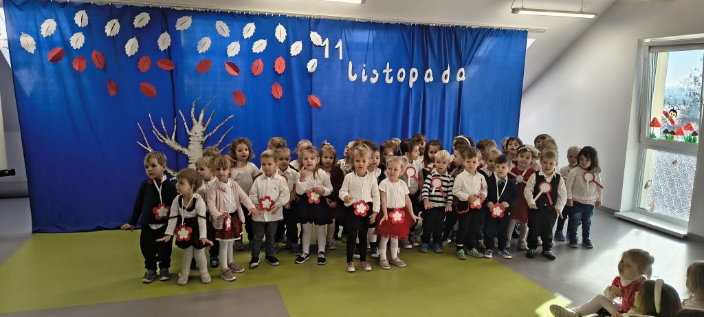 - 7.11 w naszym przedszkolu odbyła się uroczysta Akademia z okazji Narodowego Święta Niepodległości. Dzieci obejrzały prezentacje na temat symboli narodowych oraz naszej ojczyzny. Każda grupa zaśpiewała także patriotyczną pieśń