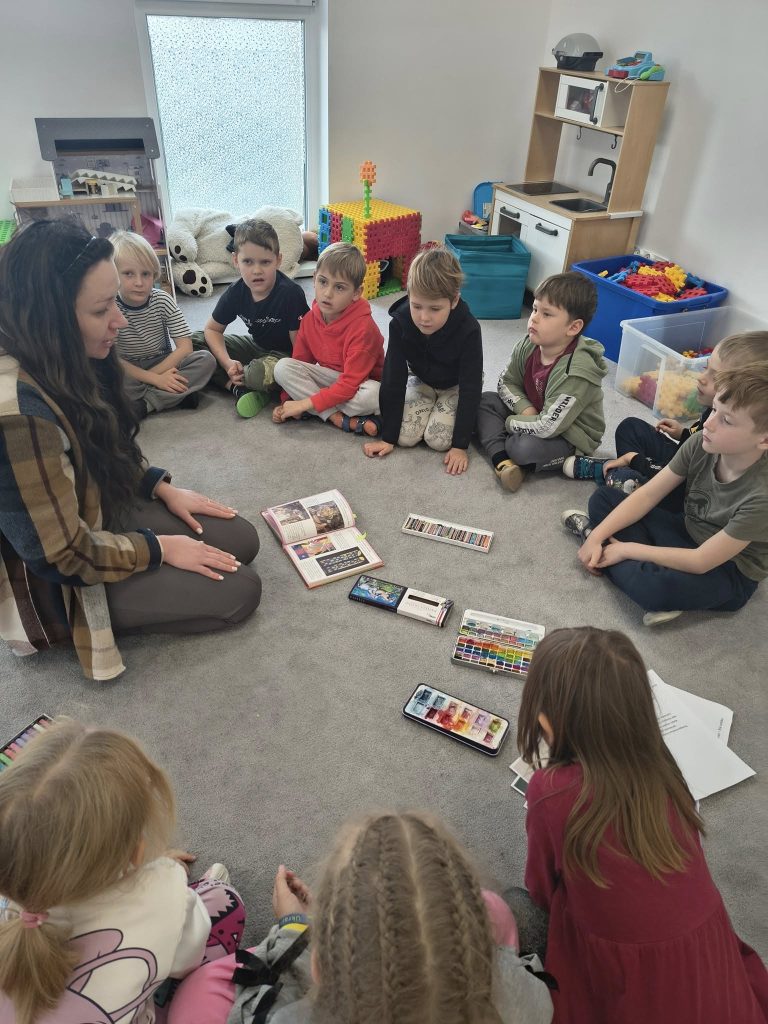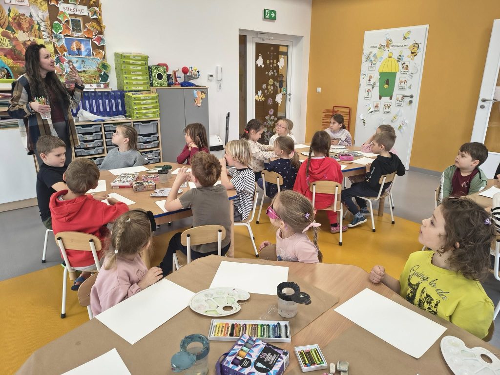 - Pszczółki wzięły udział w zajęciach plastycznych poprowadzonych przez mamę Eleonory, która wprowadziła dzieci w świat sztuki i stworzyła z dziećmi prace plastyczną wykorzystująca różnego rodzaju materiały, które artyści wykorzystują w swoich pracach