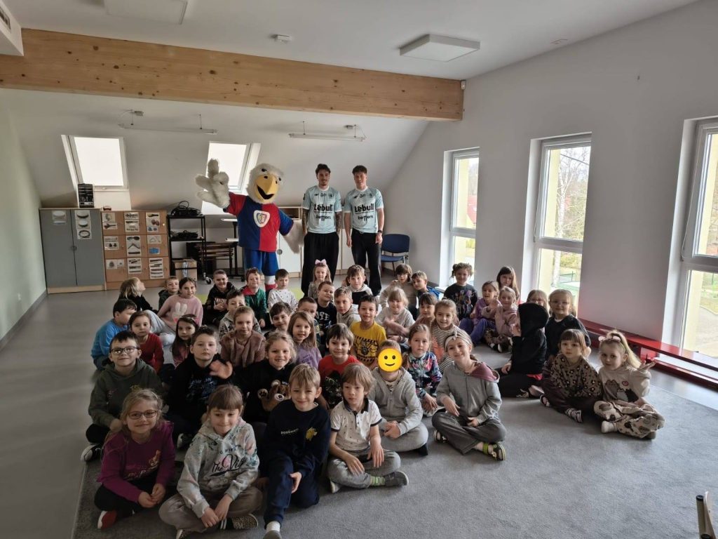 - 17.03 do przedszkola zawitali piłkarze Piasta Gliwice wraz z ulubioną maskotką dzieci – Piastusiem. Dziękujemy za wizytę