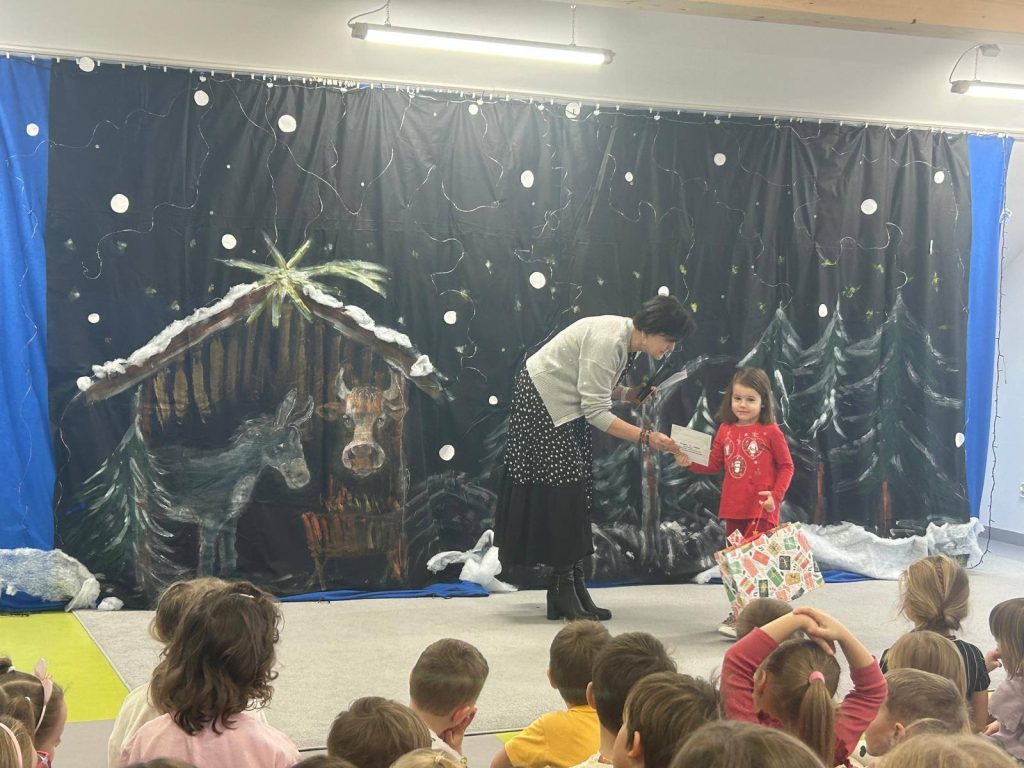 A oto wyniki przedszkolnego konkursu: „Karta Bożonarodzeniowa”. I miejsce: Amelka Jujka, II miejsce: Hania Romanów, III miejsce: Zuzia Iwan. Wyróżnienia otrzymali: Franciszek Zelder oraz Patryk Bek. Serdecznie gratulujemy!!