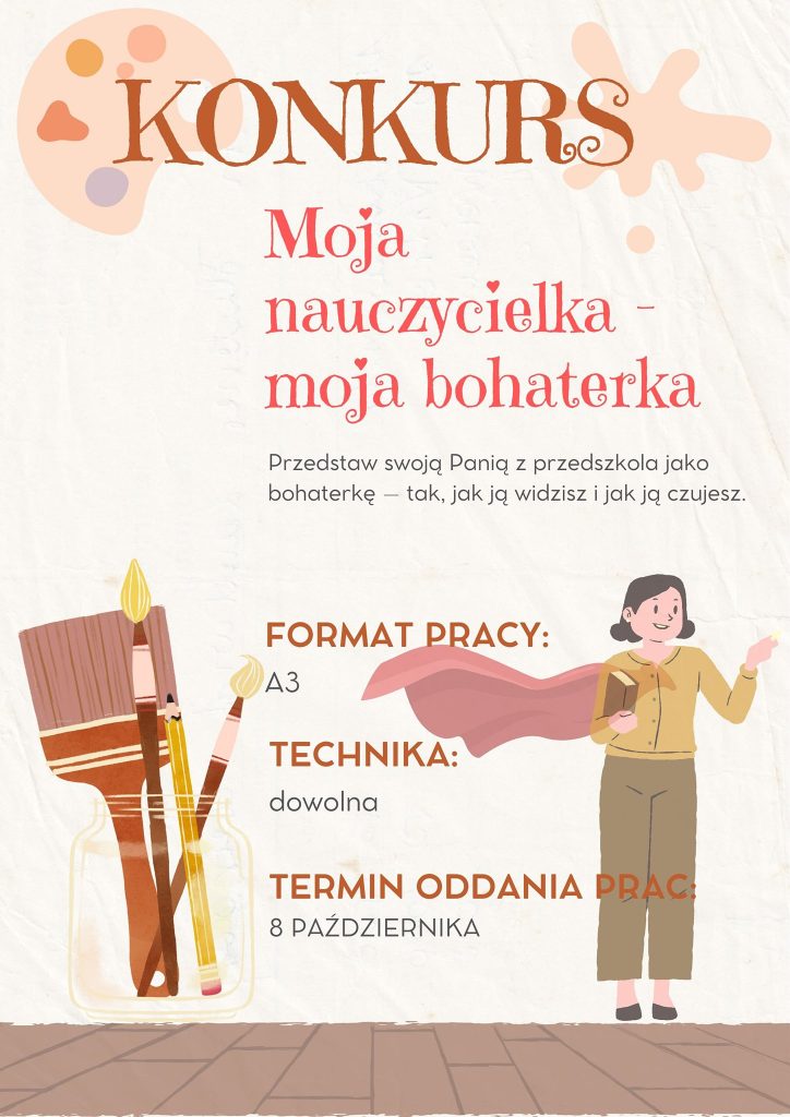 3. Temat konkursu Tematem pracy jest: „Moja nauczycielka – moja bohaterka”.